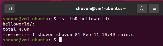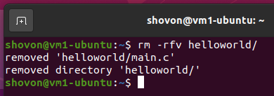 The helloworld/ directory is removed from the HOME directory, as you can see in the screenshot below.