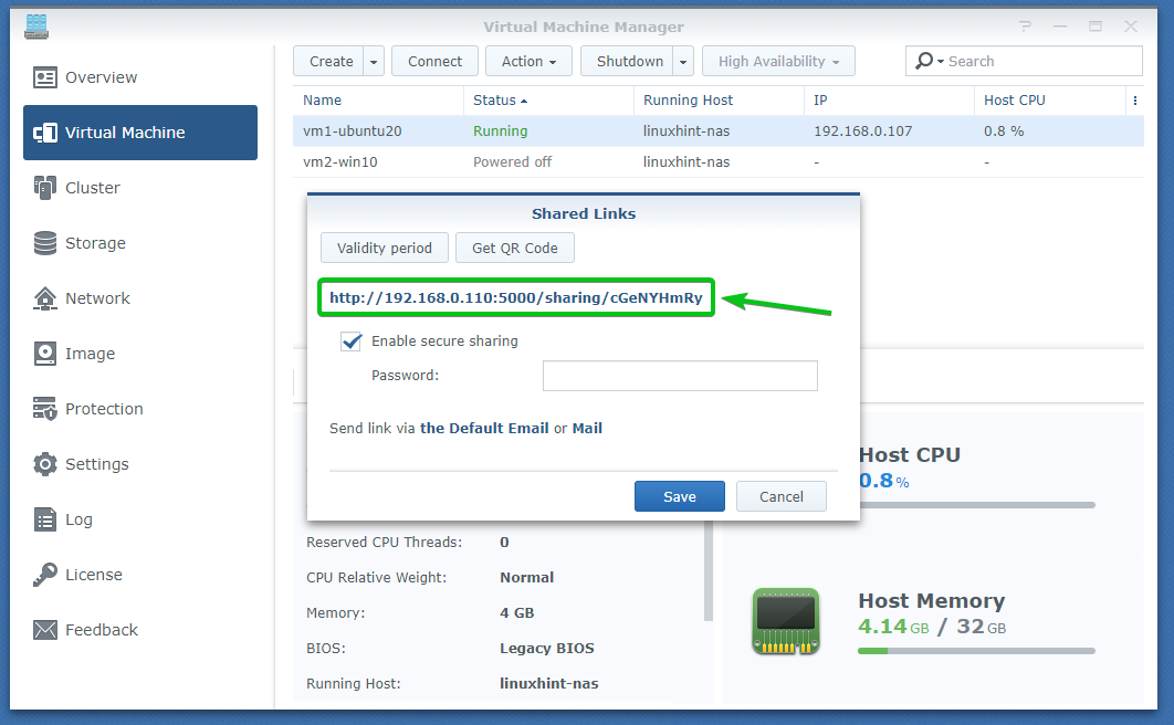 To see the QR code that you can use to access this shared virtual machine, click on Get QR Code, as you can see in the screenshot below.