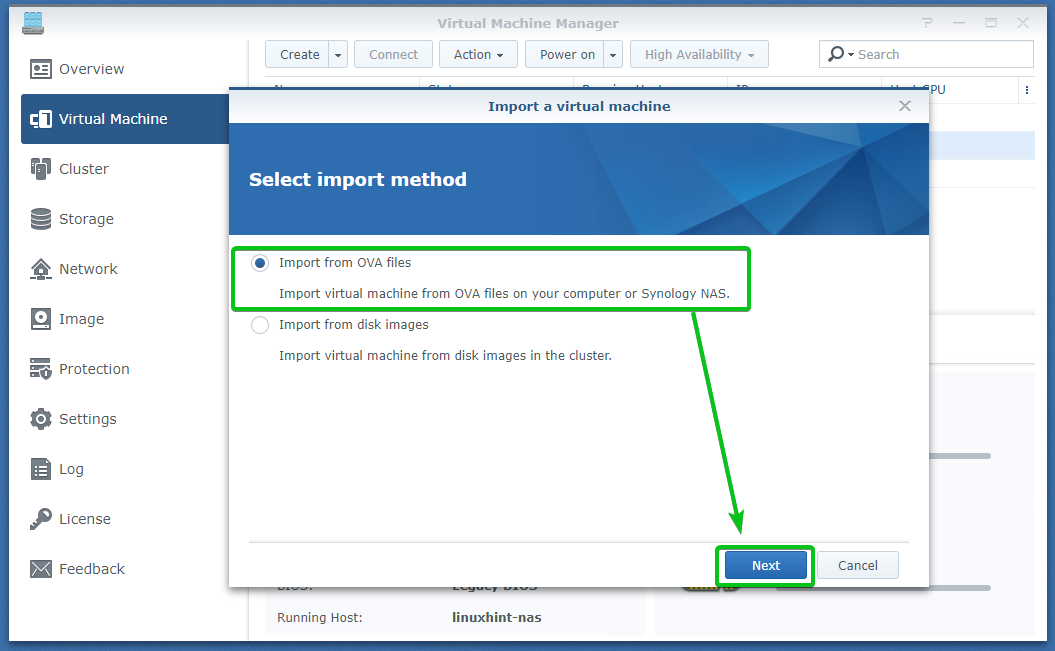 Select Import from OVA files and click on Next, as marked in the screenshot below.