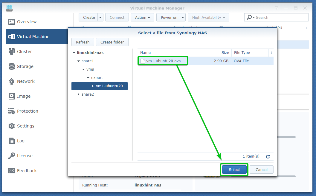 Select the OVA file you’ve just exported and click on Select, as marked in the screenshot below.