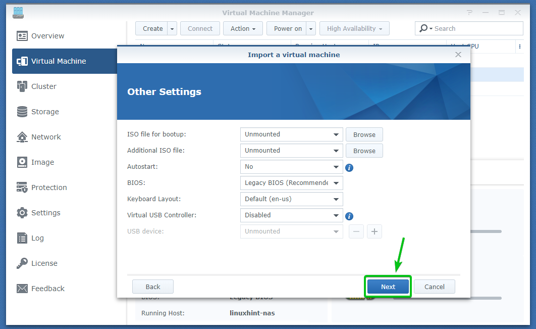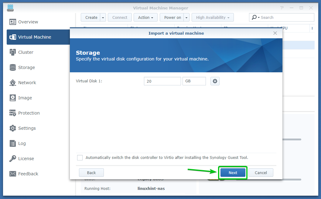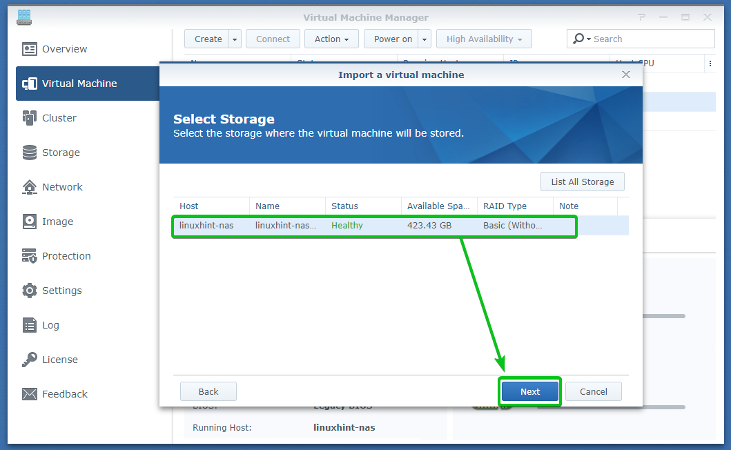 Select the storage volume where you want to save the imported virtual machine data and click on Next.