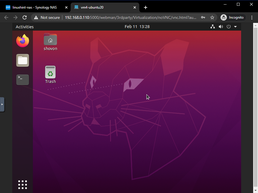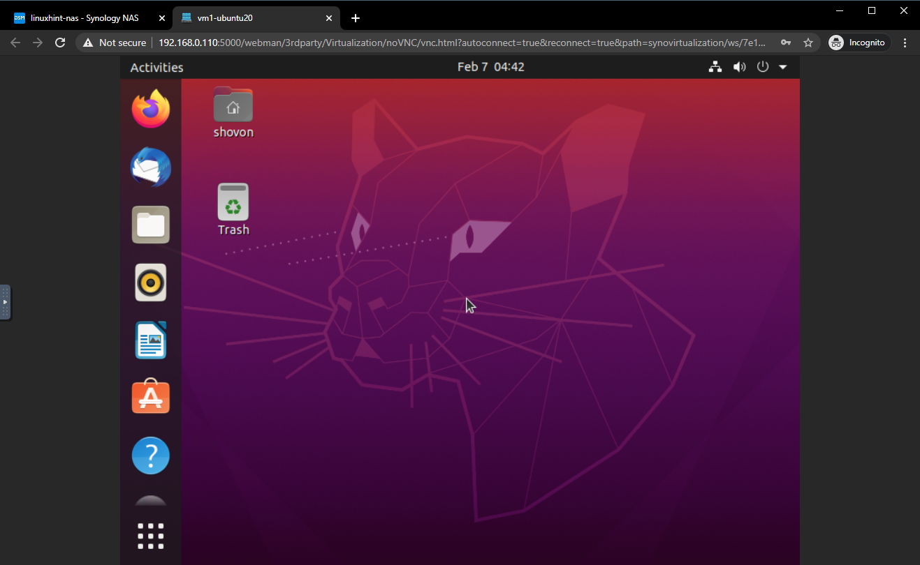 Once you log in, you should see the Ubuntu 20.04 desktop like the screenshot below.