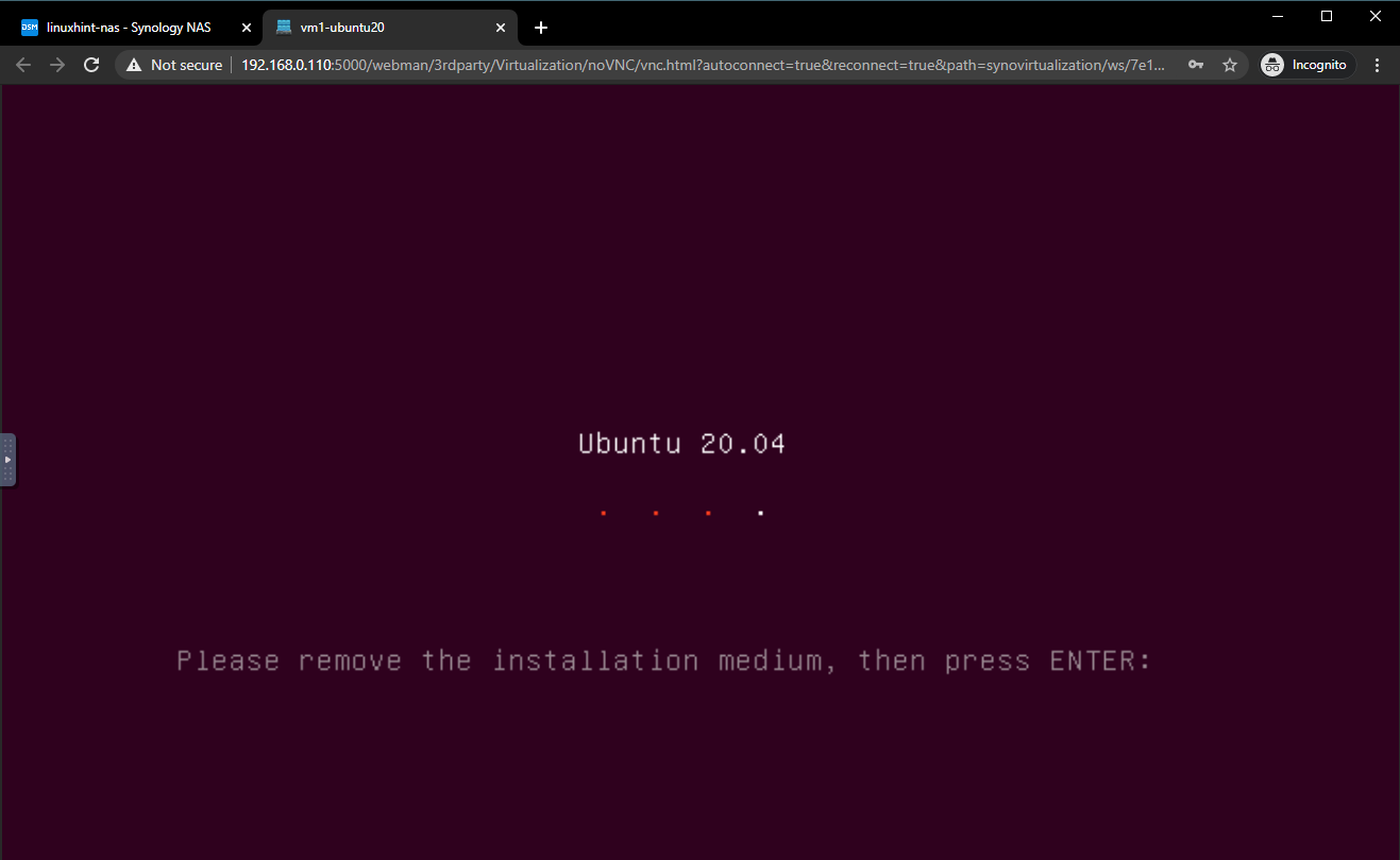 A new browser tab should be opened with the display of the virtual machine, as you can see in the screenshot below.