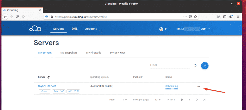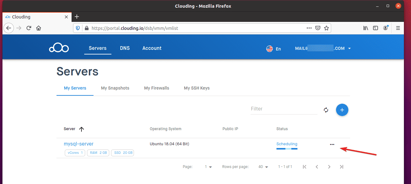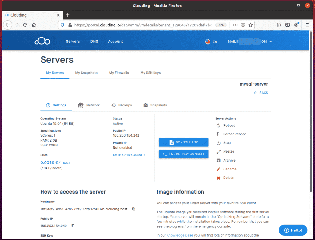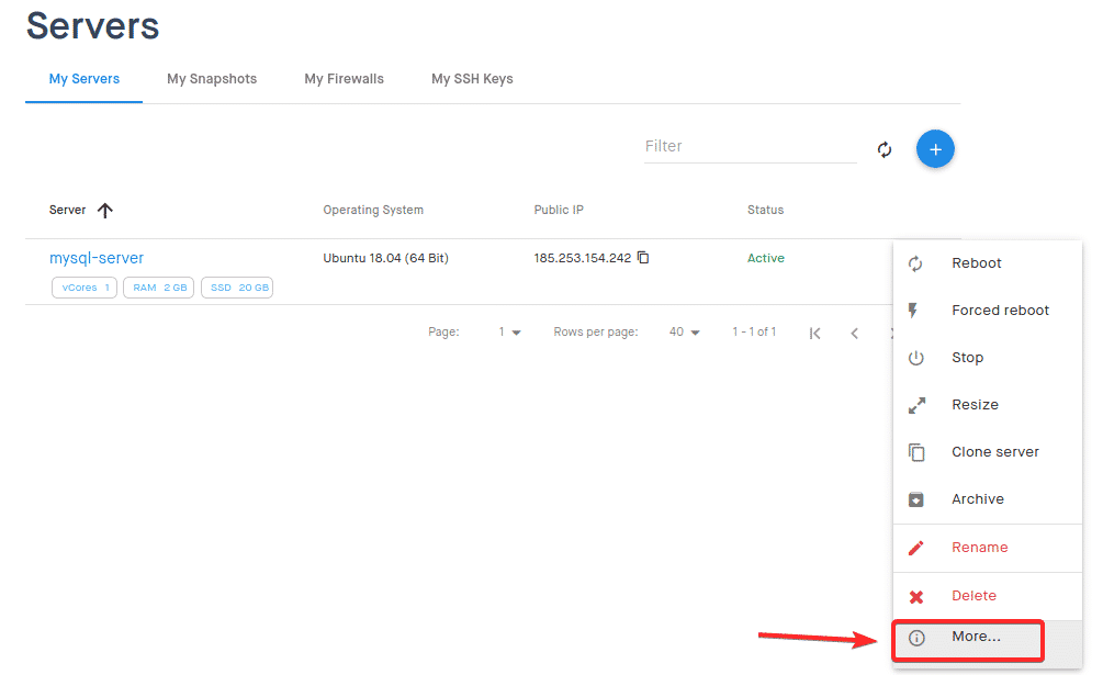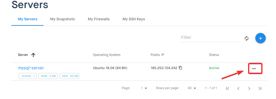 Click the “…” button alongside your mysql-server VPS on the Clouding.io dashboard.
