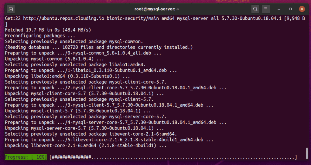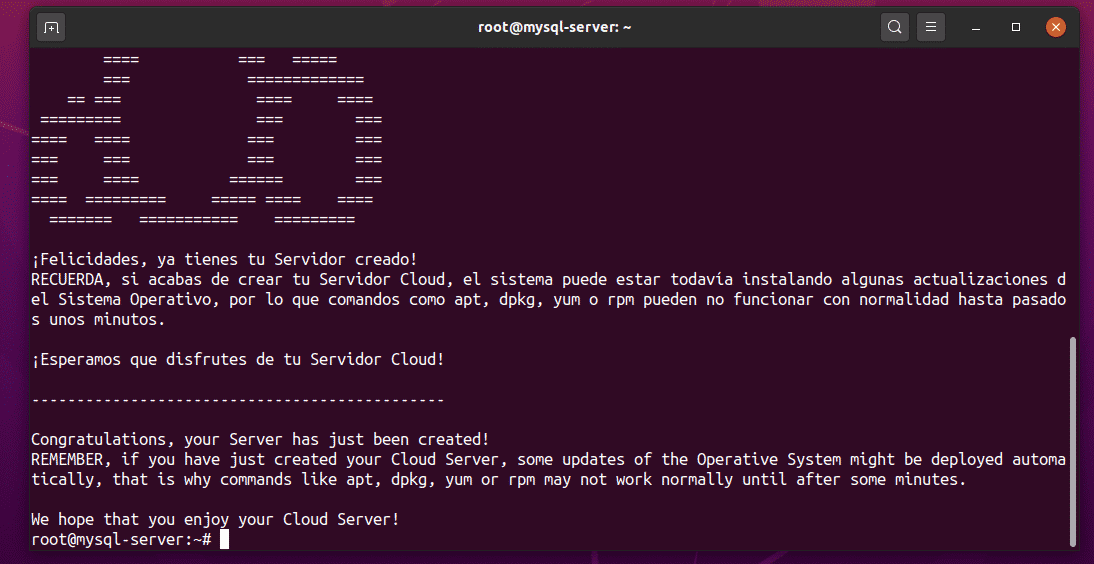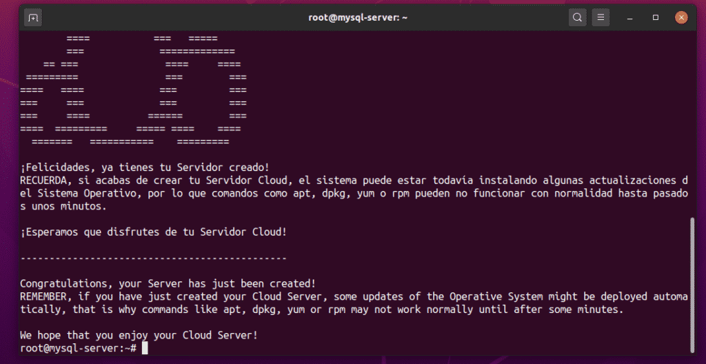 As you can see, the VPS mysql-server is being created. This process may take a while to complete.
