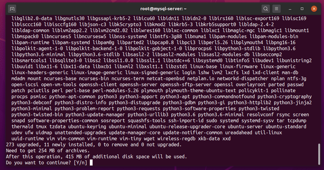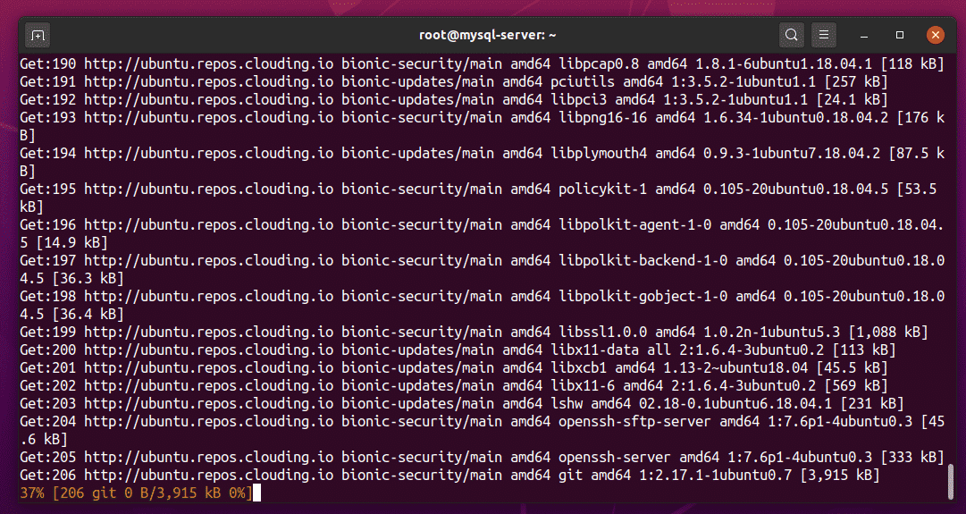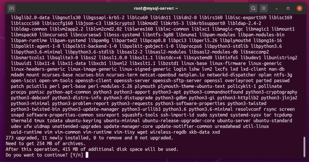 The APT package manager should begin downloading and installing all required packages.