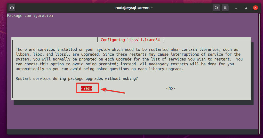 If you see this prompt message during the Ubuntu upgrade process, select <Yes> and press <Enter>.