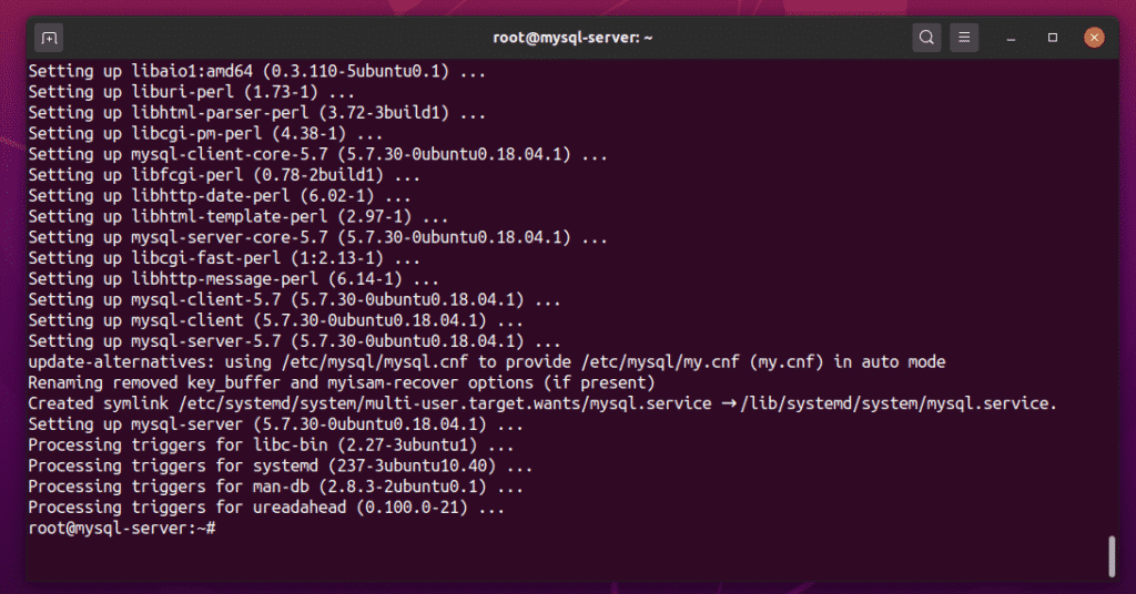 At this point, the MySQL server and client programs should be installed.
