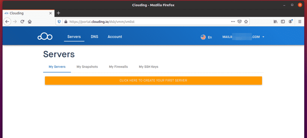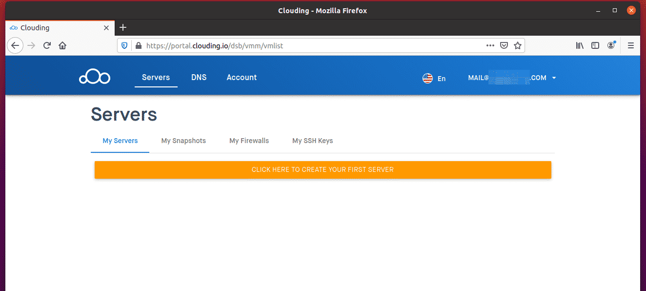 Once you have logged in, you should see your Clouding.io dashboard.