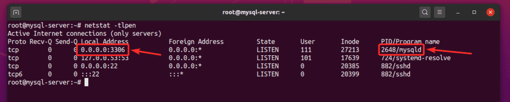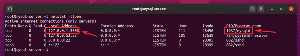 By default, the MySQL server binds to TCP port 3306 of the localhost IP address 127.0.0.1, as you can see in the screenshot below.