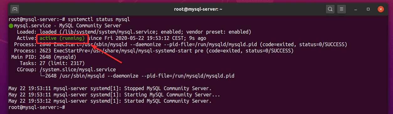 If the mysql service is still not active (running) for any reason, you may also start the mysql service manually, as follows:
