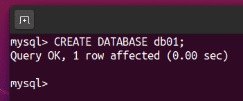 Create a new database, db01, via the following SQL statement: