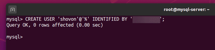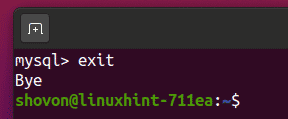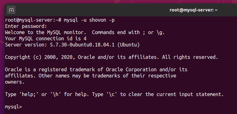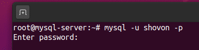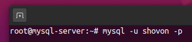 To test whether the newly created user shovon can log in to the MySQL Server, run the following command: