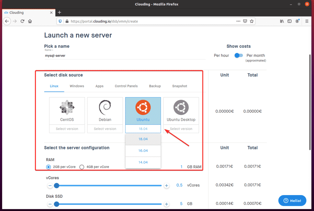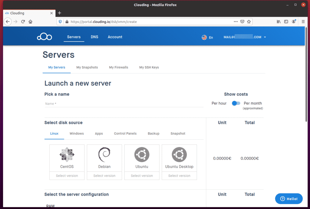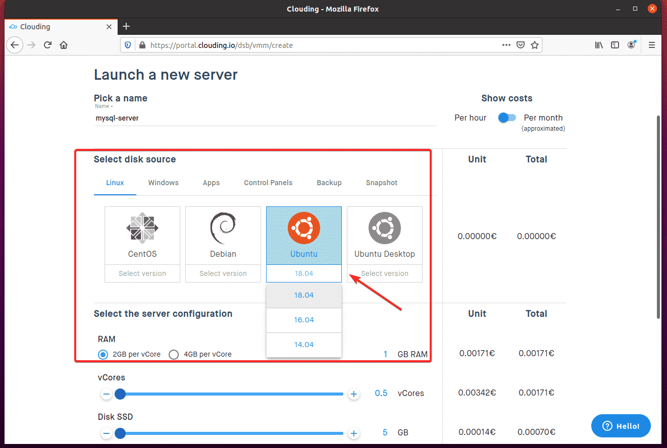 The Clouding.io platform provides a clear interface to provision the resources you need, select the hardware resources required for your task, and see the granular pricing that will be incurred by your hardware selection.