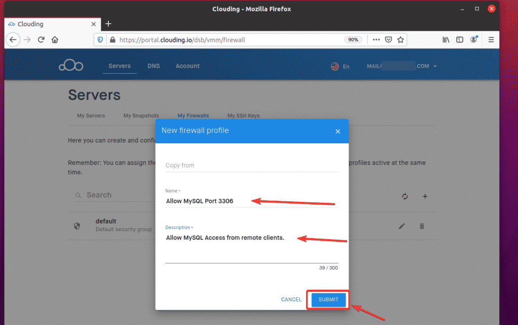 Type a name and a short description of your firewall profile. Then, click SUBMIT.