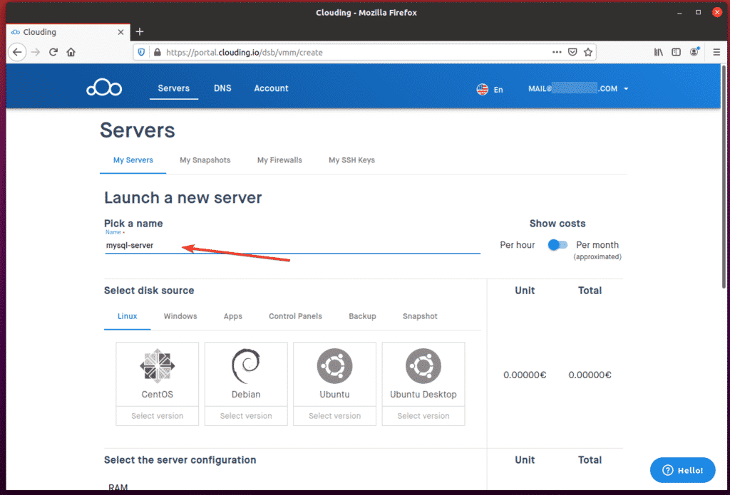 Type in a name for your VPS in the “Pick a name” section. I chose the name mysql-server in my example.