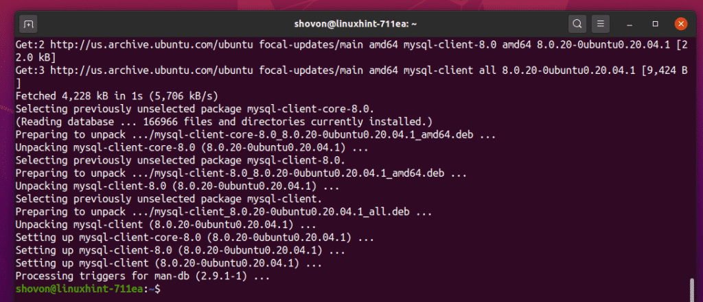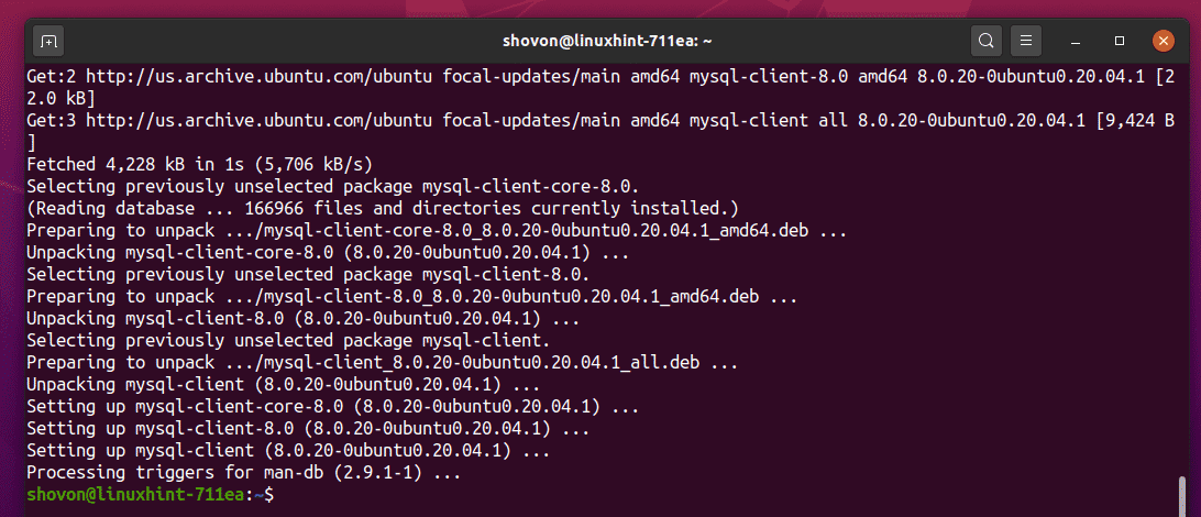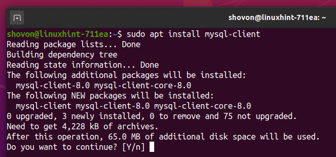 The MySQL client program should now be installed.