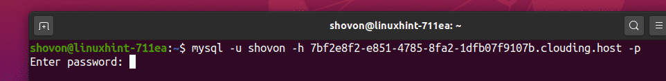 Enter the password of your remote MySQL user and press <Enter>.