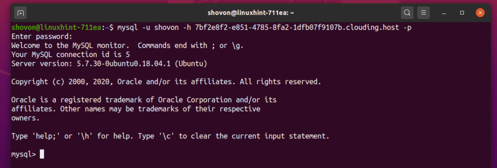 You should now be logged in to your remote MySQL server.