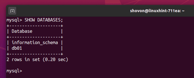 As you can see, the database db01 is remotely accessible for the remote user.