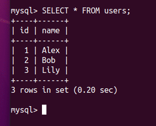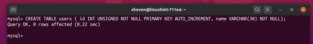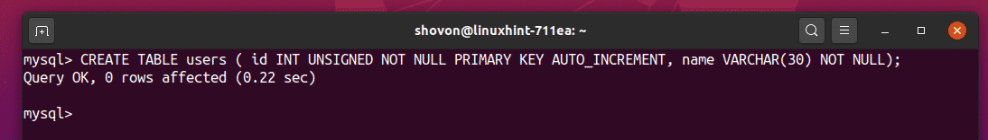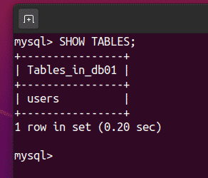 As you can see, the users table has been created.