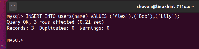 Insert some dummy values into the users table, as follows: