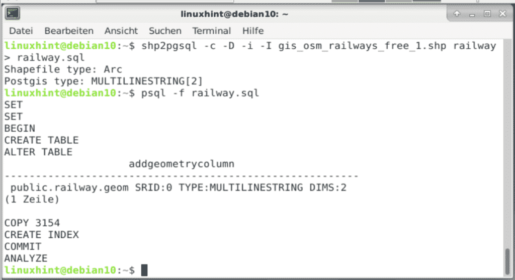 Having downloaded the shape file, load the content of the shape file into PostGIS with the help of the special commandline tool shp2pgsql. The example below demonstrates how to convert the shape file into a sequence of SQL commands, first, and upload the list of SQL commands to the database using psql, next: