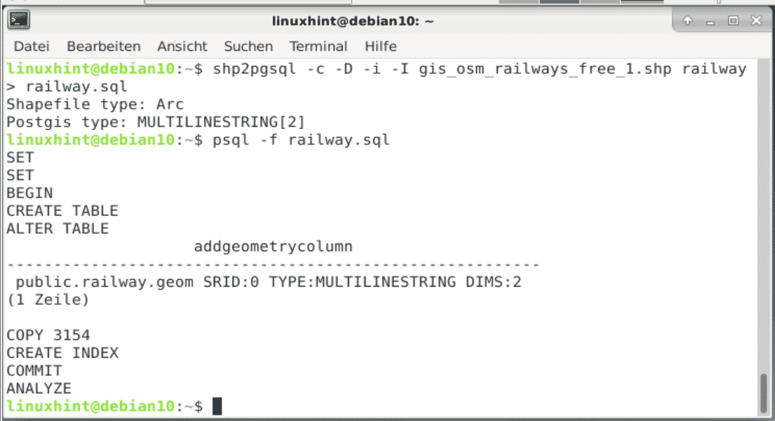 Step five is the creation of a separate database for the user linuxhint. In order to do so type in the command createdb as user postgres: