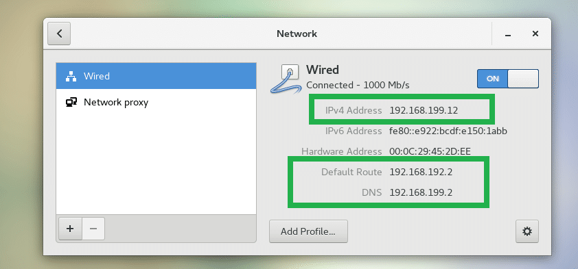 Now disconnect your network adapter and reconnect it and it should have a static IP assigned as you can see in the screenshot below.