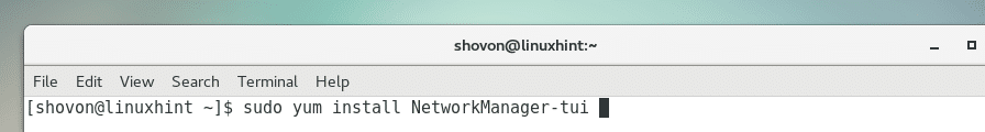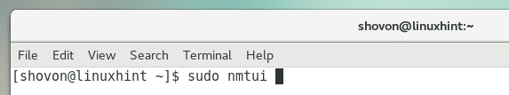 nmtui or NetworkManager Text User Interface is used to set up static IP from the command line easily. nmtui may not be installed by default on CentOS 7. But you can easily install it from the official package repository of CentOS 7.
