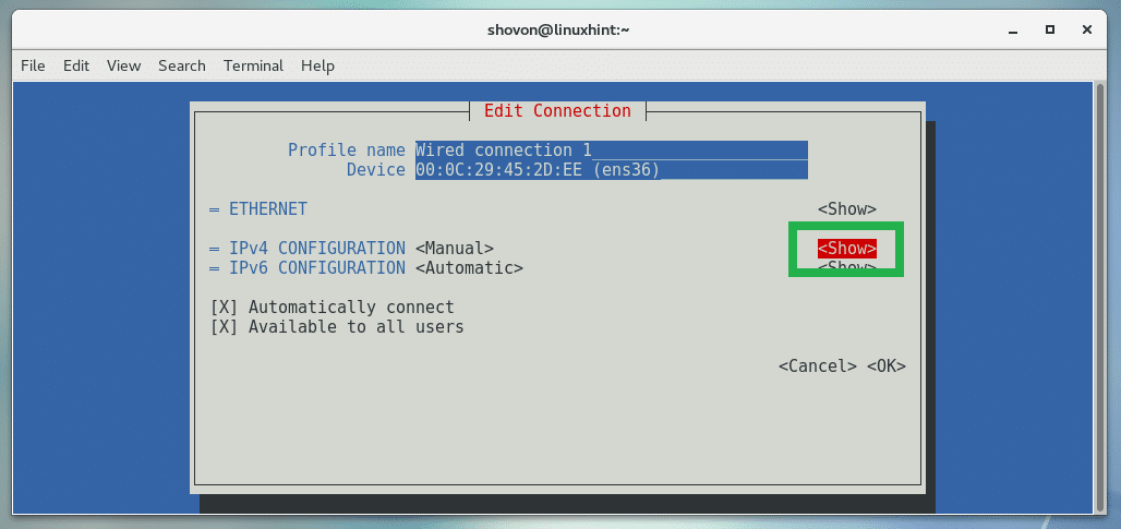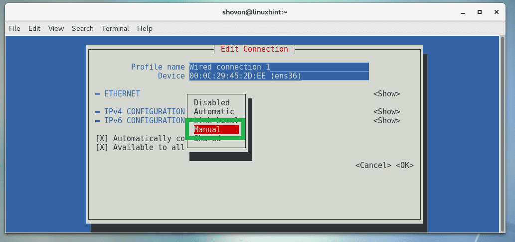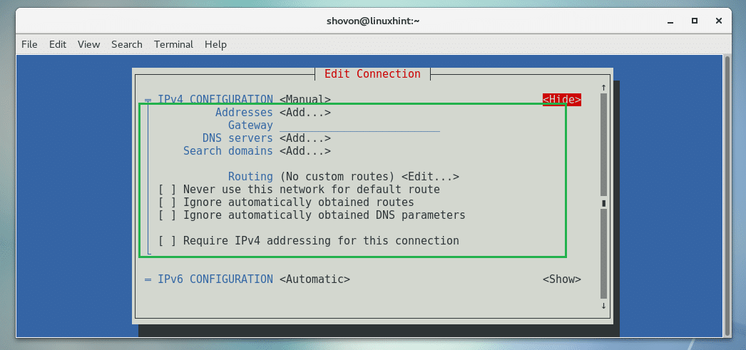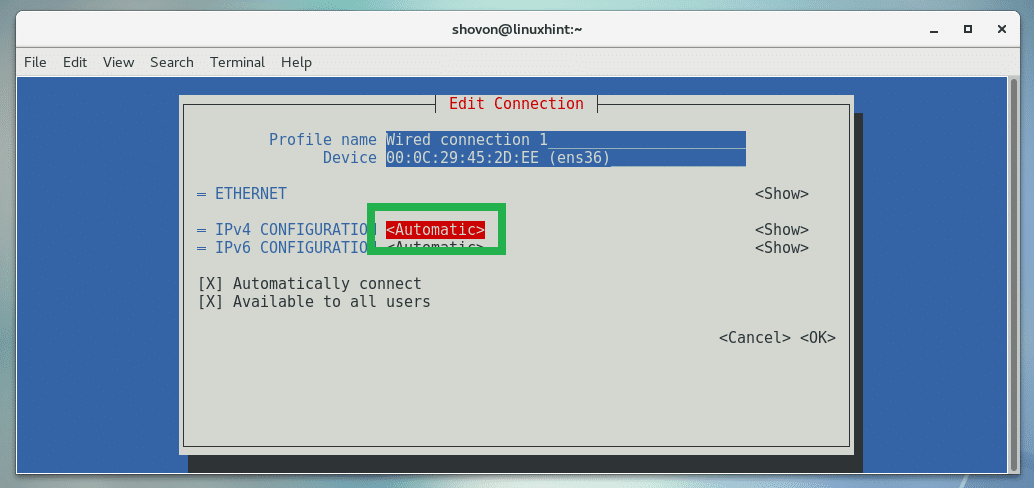 Go to IPv4 configuration’s <Automatic>, and press <Enter>.