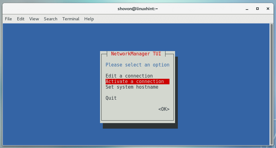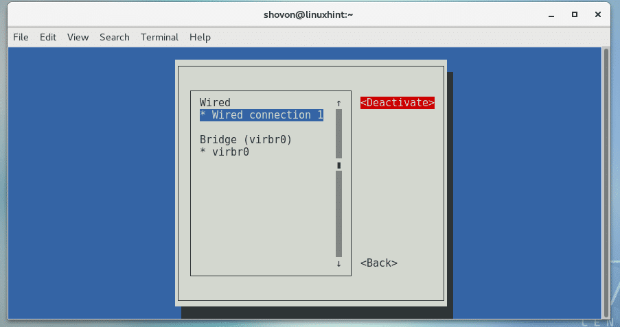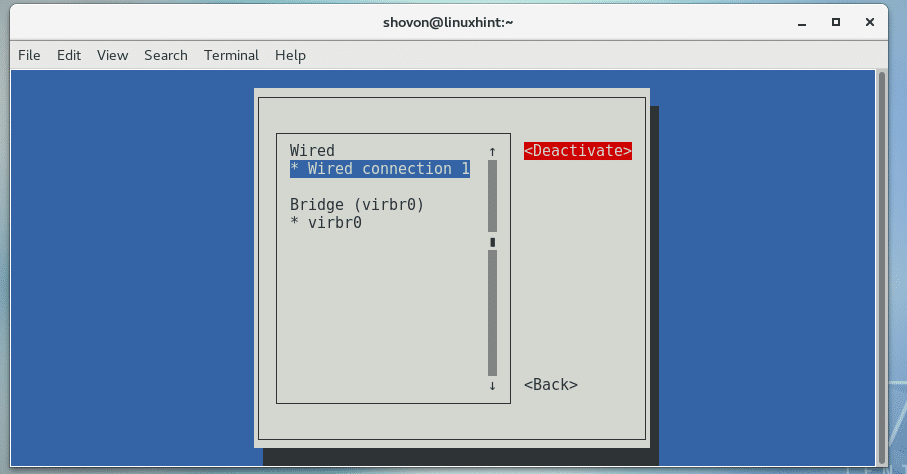 Now from here, select your connection and select <Deactivate> and press <Enter> to deactivate the connection.