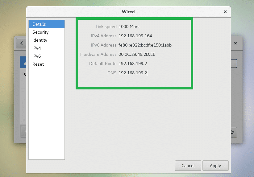 You should see the following window. On the Details tab, all the information about your current network configuration is displayed.
