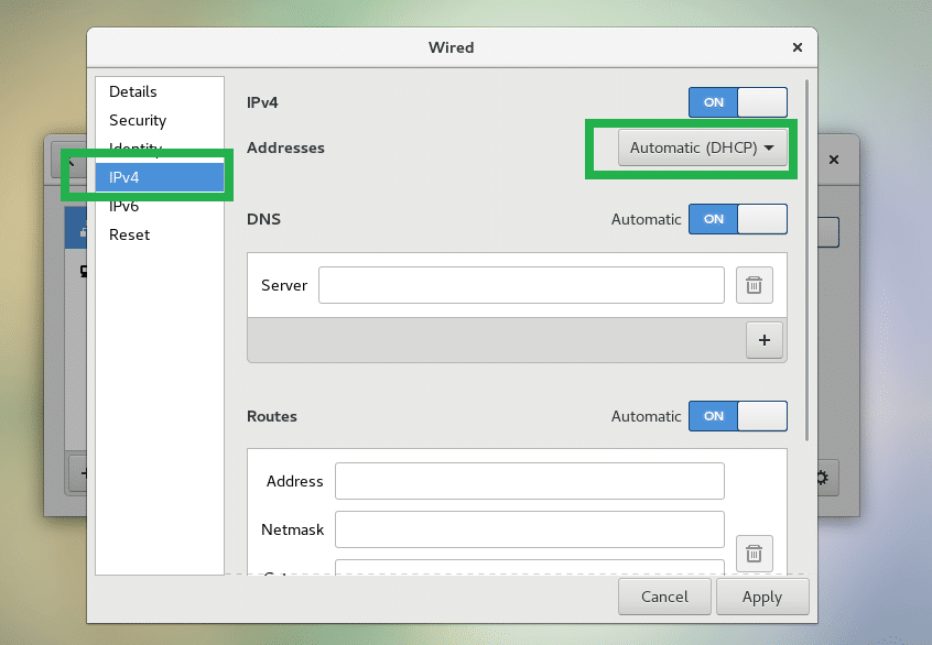 As you can see, I have Addresses set to Automatic (DHCP), which means DHCP is enabled on this connection.