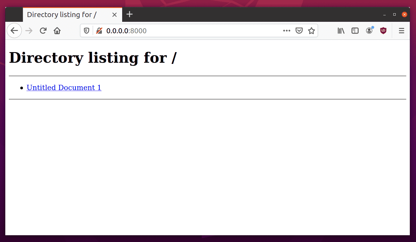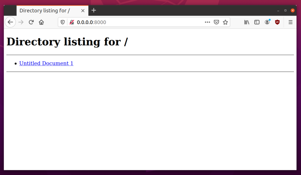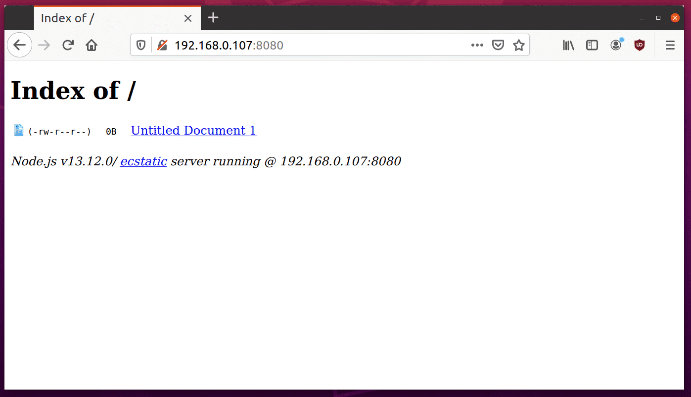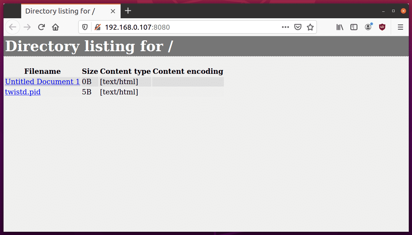 Enter the IP address obtained above in the URL. The correct URL to access the file server now would be: “http://192.168.0.107:8080/”. You can open this URL in any web browser on any device to download the listed files. Below is a screenshot of this URL opened in Firefox web browser on Ubuntu: