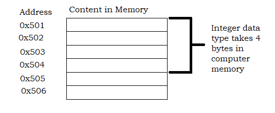 A computer’s memory is a collection of memory units (i.e. byte). When sizeof (int) returns four in a particular computer system, we can say that an integer variable takes 4 bytes to hold its value in that specific computer system’s memory. Also, please note that the return value of the sizeof operator also depends on the machines that you are using (32-bit system or 64-bit system).