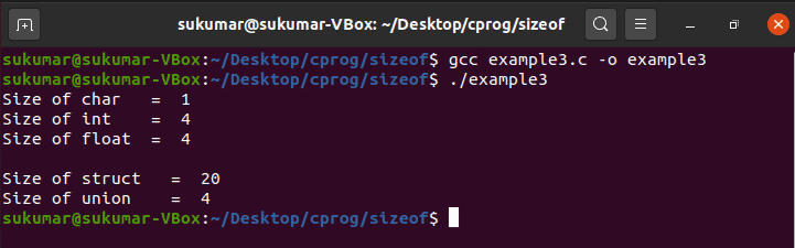 In this example, we will see how to use sizeof operator for user-defined data types such as structure and union. Let’s use the program and understand the output.