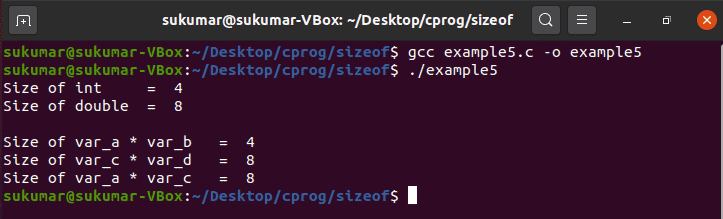 printf("Size of var_a * var_c = %ld \n", sizeof(var_a * var_c));