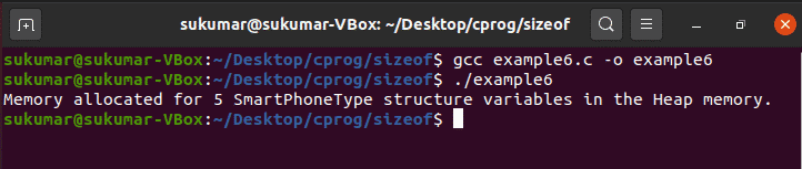 printf("Memory allocated for 5 SmartPhoneType structure variables in