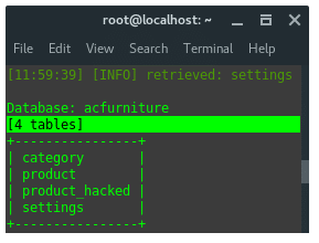 So far, we can conclude that the arrangement of data is, the site acfurniture.com has two databases, acfurniture and information_schema. The database named acfurniture contains four tables: category, product, product_hacked, and settings. There is no compromised table name, but, let’s investigate more. Let see what is inside settings table. Inside the table is actually there are columns, and the data.
