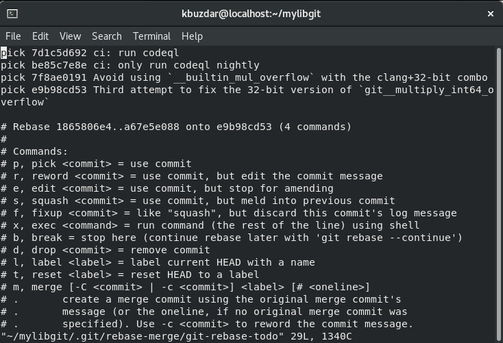 Now, you will invoke the git to start an interactive rebase session by using the following command: