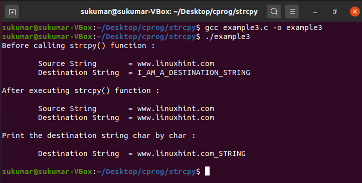 Now, we will see several examples to understand the strcpy() function:
