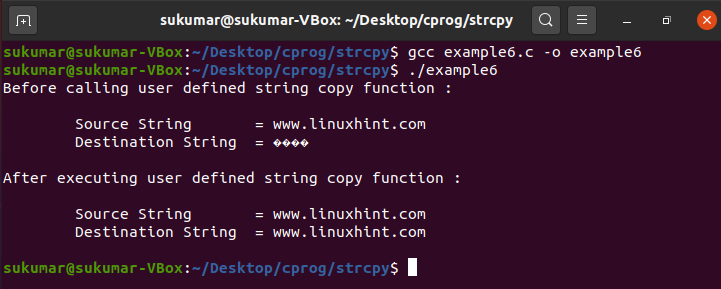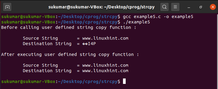 strcpy() – User Defined Version (example5.c):