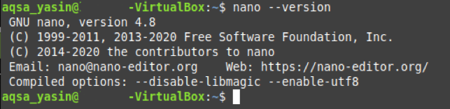 We wanted to check the version of the nano editor, which is shown in the image below: