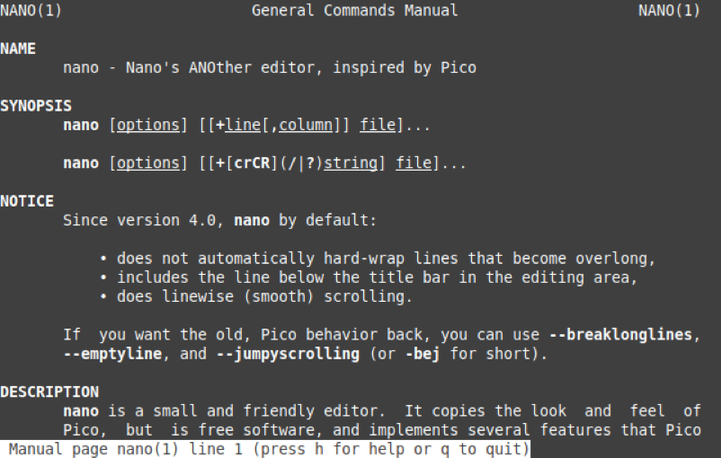 We wanted to access the manual of the nano editor, which is shown in the image below: