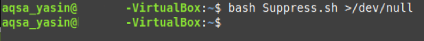 Now, to suppress the output of the “bash” command, we will run the following command in our terminal: