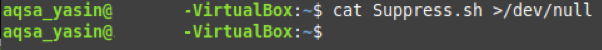 Now, to suppress the output of the “cat” command, we will run the following command in our terminal: