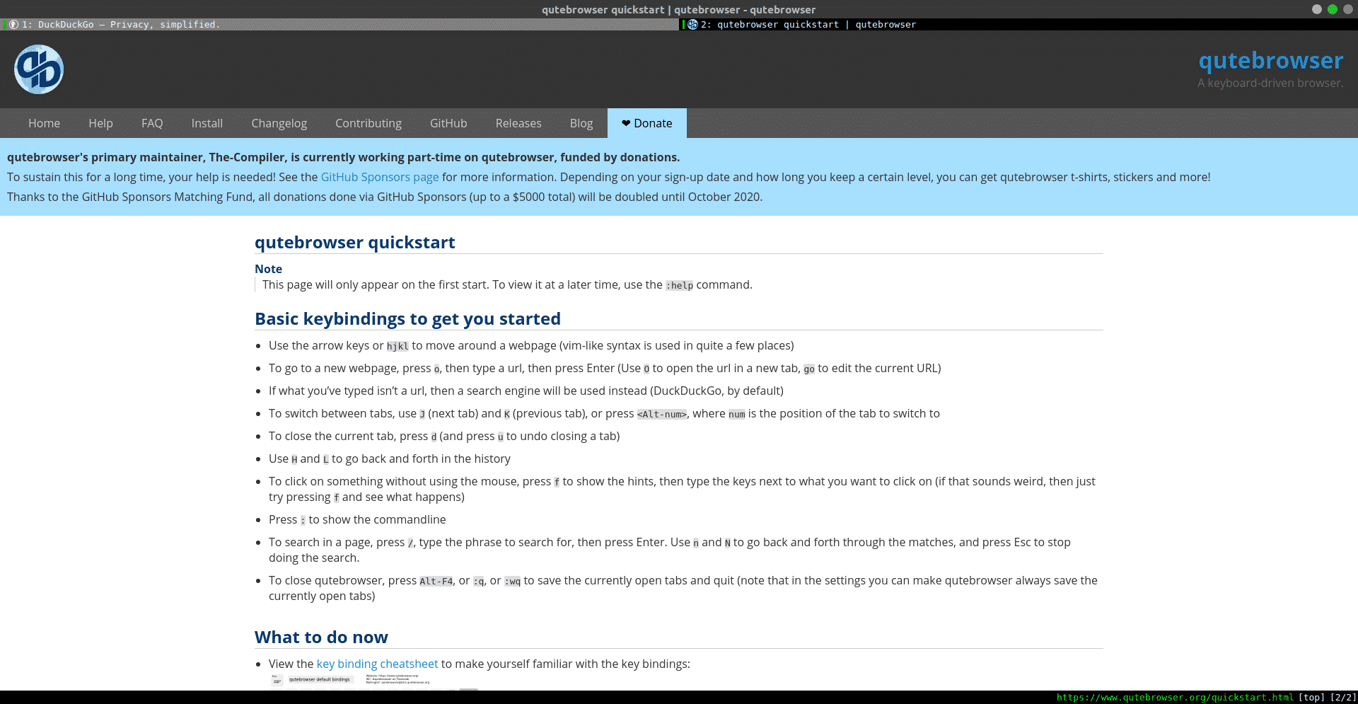 The browser is highly customizable and allows users to map specific keybinds to their favorite websites. To configure qutebrowser, visit their site.