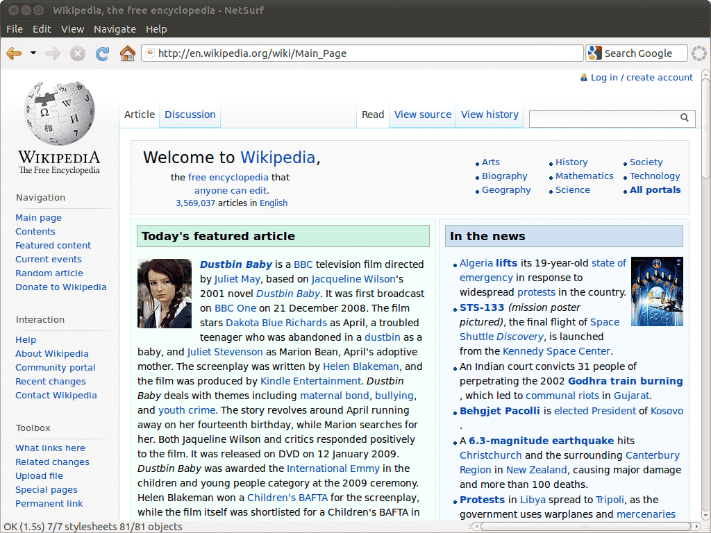 Netsurf is a lightweight, cross-platform Internet browser that is written in C. It features its own layout engine and is licensed under GPL v2. Some of its key features include support for HTTPS, Hotlist manager (bookmarks), URL completion, search-as-you-type text search highlighting and a fast, lightweight layout and rendering engine.