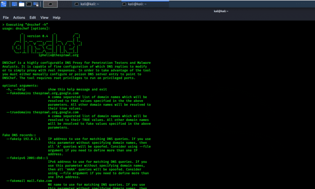 The dnschef tool is a DNS proxy for analyzing malware and penetration testing. A highly configurable DNS proxy, dnschef is used for analyzing network traffic. This DNS proxy can fake requests and use these requests to be sent to a local machine, instead of a real server. This tool can be used across platforms and has the capability to create fake requests and responses based on domain lists. The dnschef tool also supports various DNS record types.